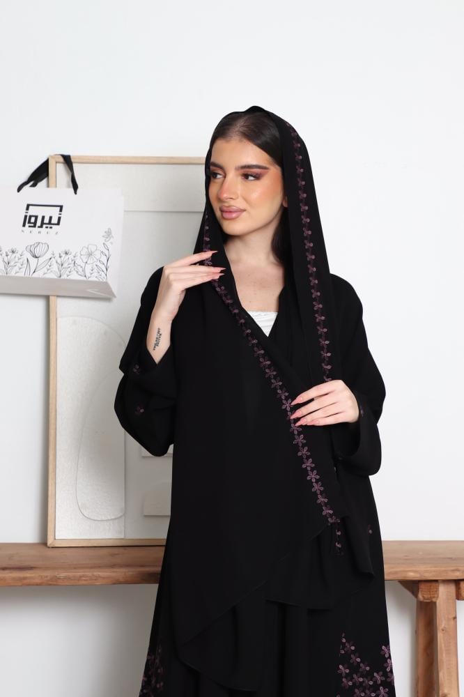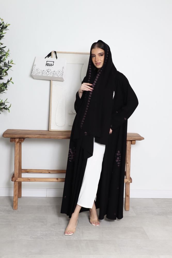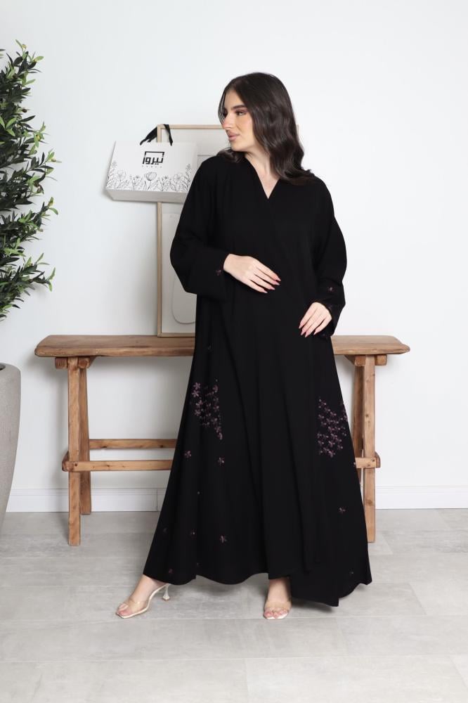 عباية مصممة من قماش ملكي فاخر يمنحك راحة وانسيابية، بقصة كلوش تضيف لمسة أنثوية مميزة.