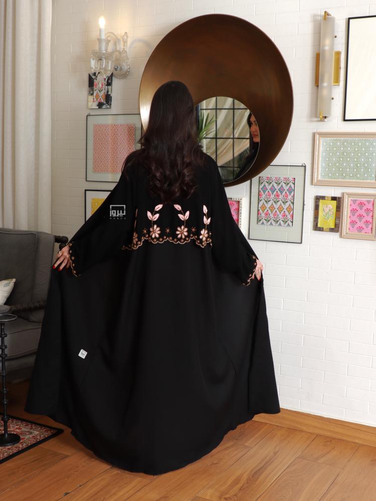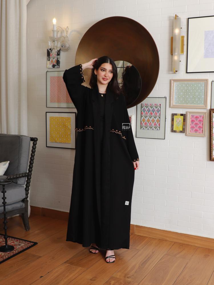 تزيّن العباية تطريزات يدوية فاخرة على الأكمام وأطراف العباية تضيف بعدًا جماليًا فريدًا، لتكوني محط أنظار الجميع.